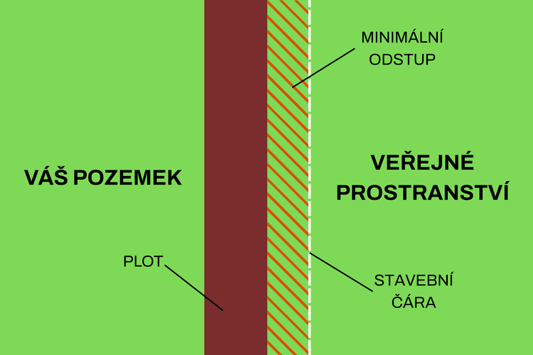 U veřejných prostranství se stavby – včetně plotu – podle vyhlášky č. 146/2024 Sb., o požadavcích na výstavbu umisťují s ohledem na tzv. stavební čáru. Mezi tato prostranství mj. patří:
